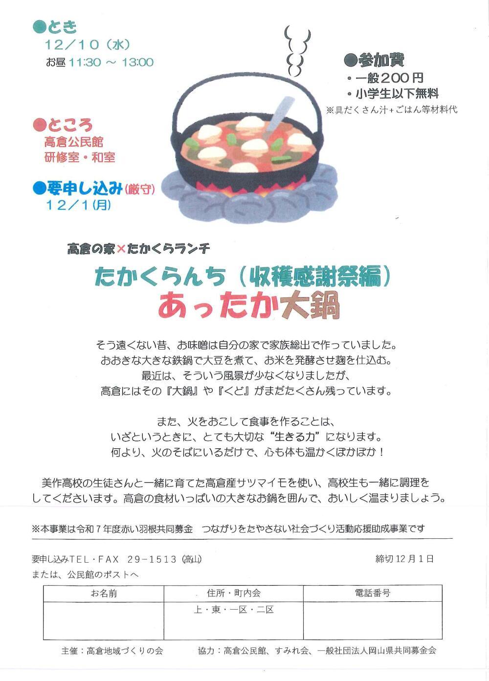 | 開催場所 | 高倉公民館 研修室・和室 |
