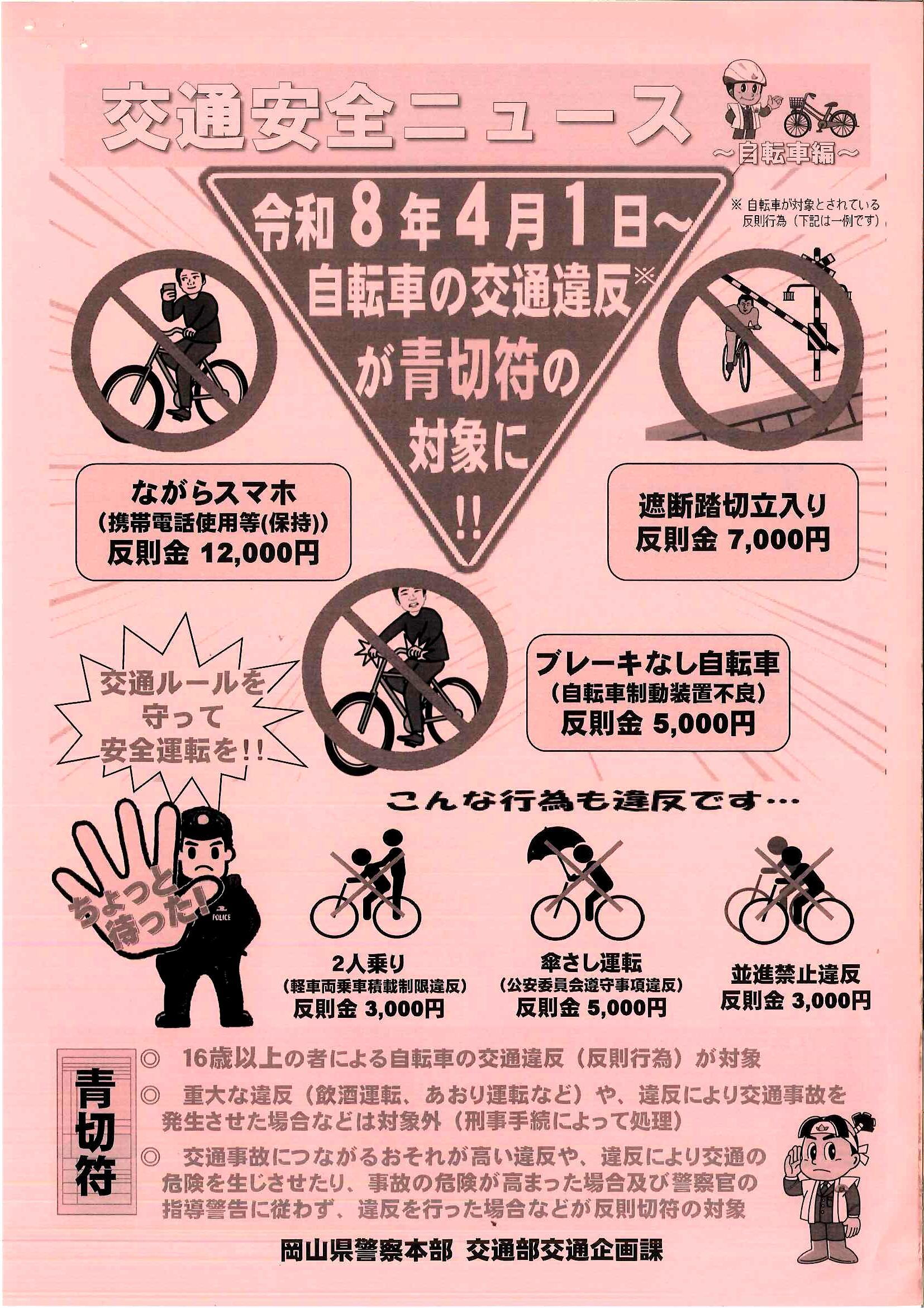 令和8年4月1日~自転車の交通違反が青切符の対象に!