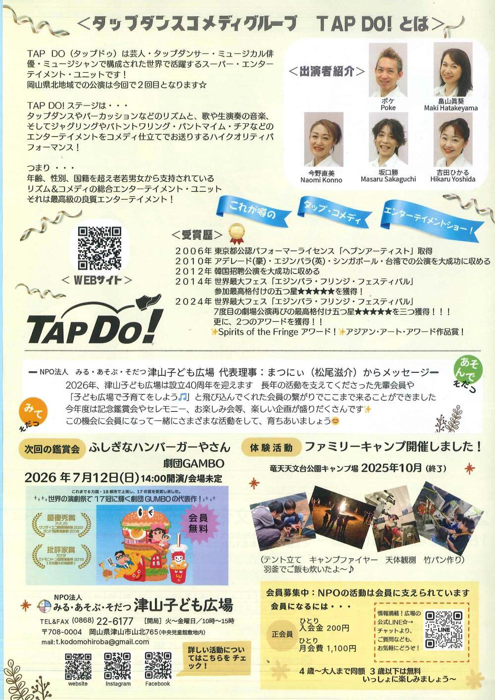 | お問い合わせ先 | NPO法人 みる・あそぶ・そだつ津山子ども広場 TEL.0868-22-6177 |