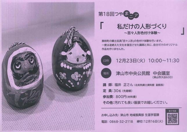| お問い合わせ先 | 津山市地域振興部生涯学習課 TEL.0868-32-2118 |