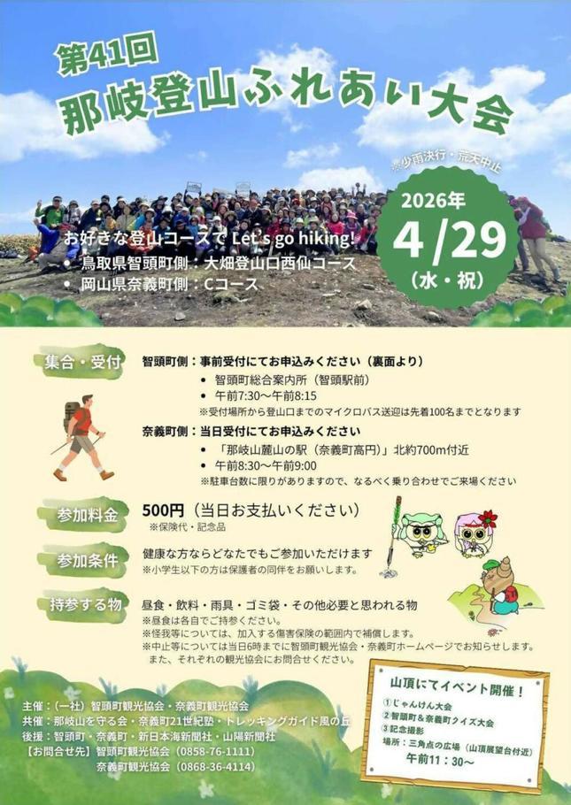 | お問い合わせ先 | (一社)智頭町・奈義町観光協会(奈義町観光協会 TEL.0868-36-4114) |