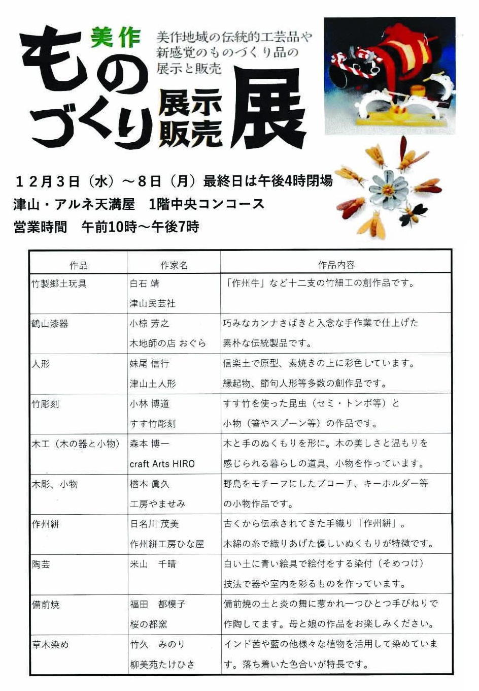 | 開催場所 | 津山・アルネ天満屋 1階中央コンコース |