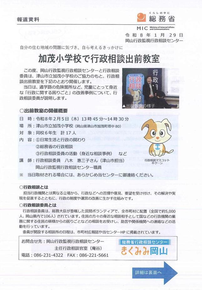 | お問い合わせ先 | 岡山行政監視行政相談センター TEL.086-231-4322 |
