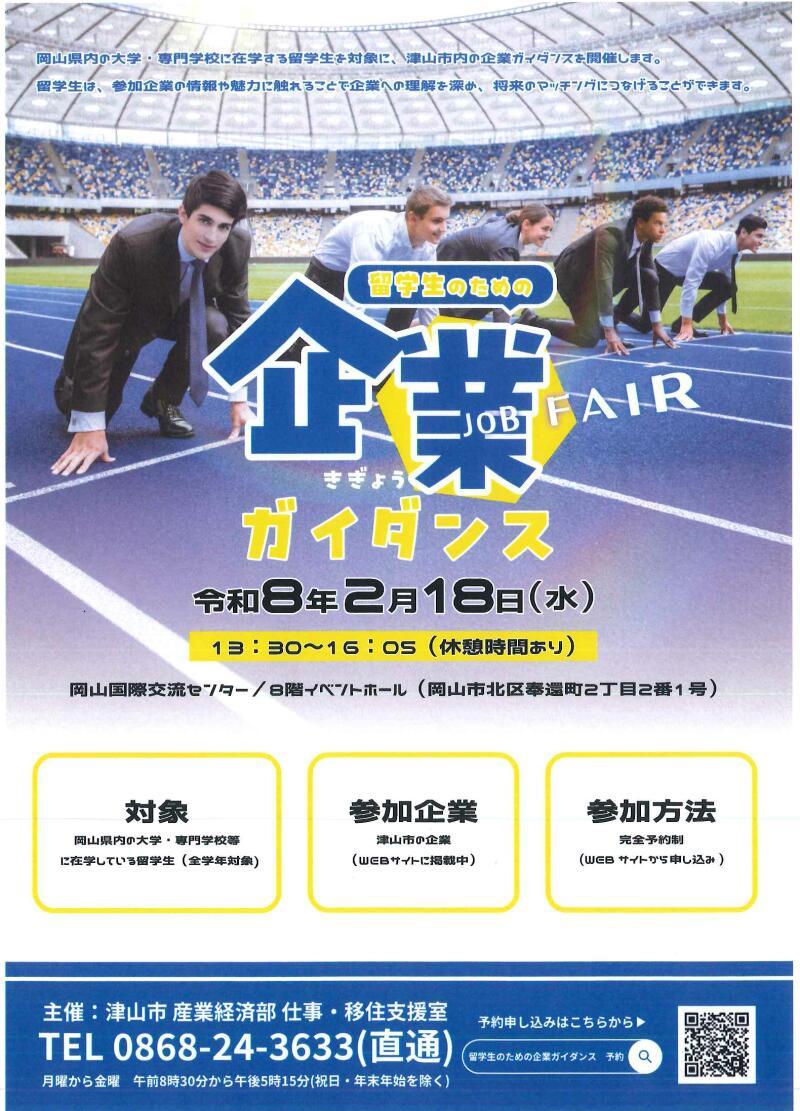 | お問い合わせ先 | 津山市産業経済部仕事・移住支援室 TEL.0868‐24‐3633 |