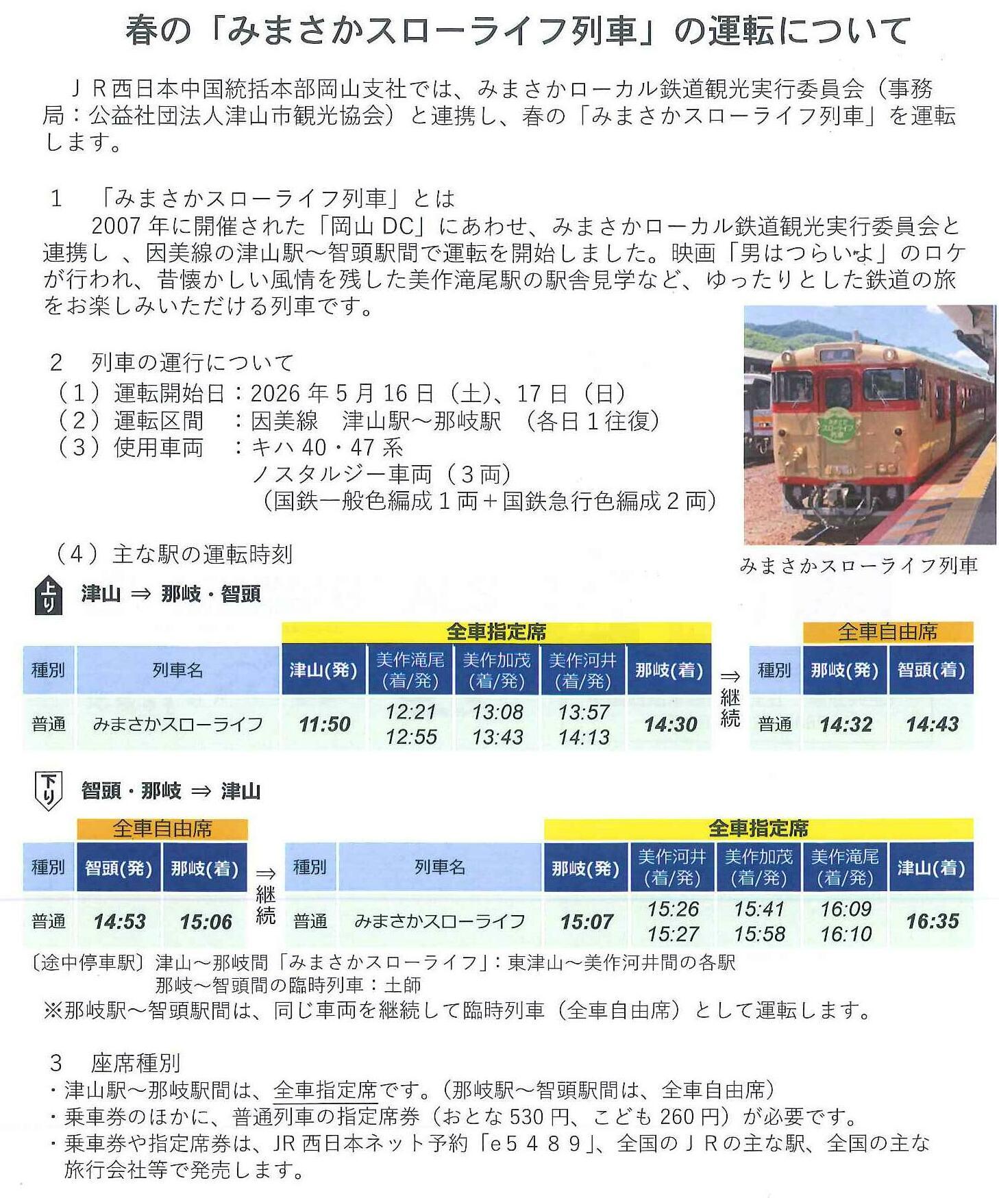 | 開催場所 | JR 因美線 津山駅~那岐駅(一往復) |