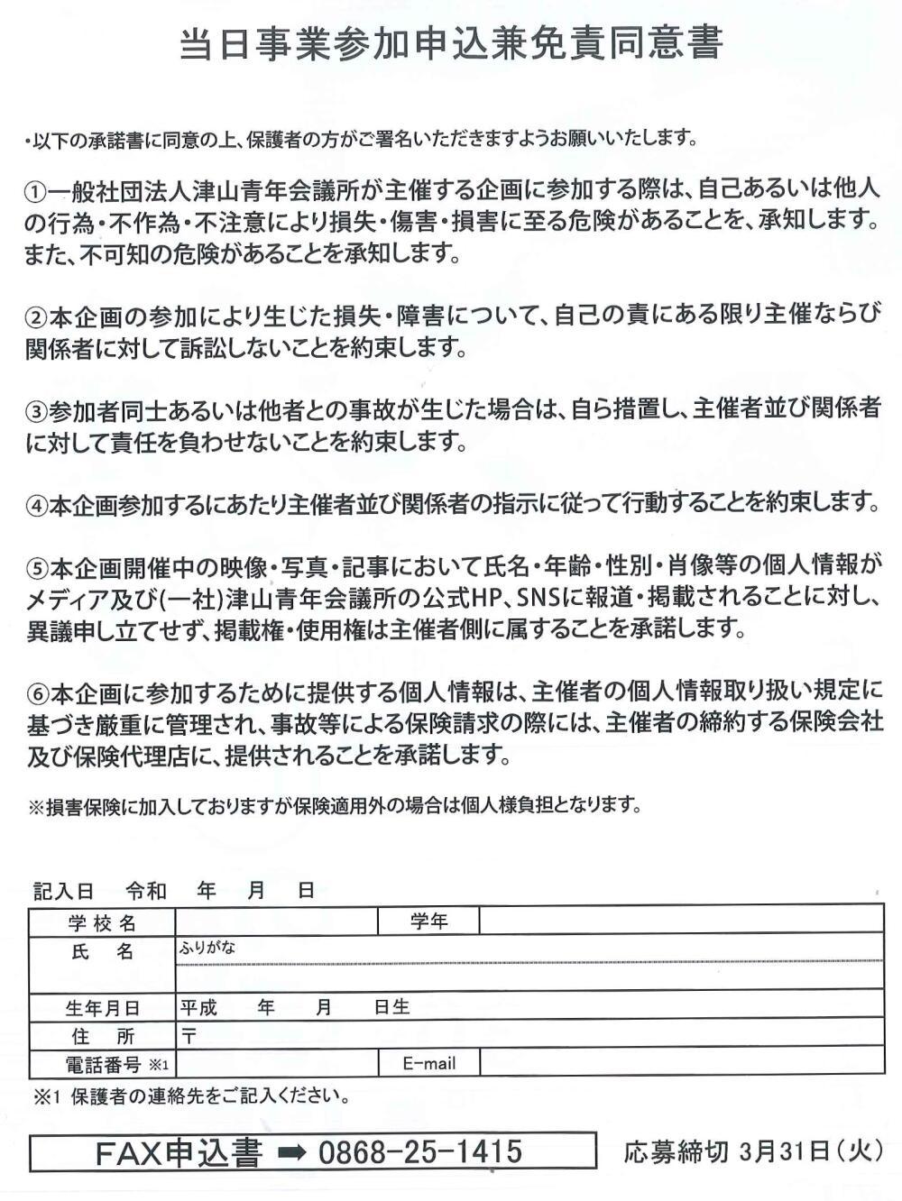 | お問い合わせ先 | 一般社団法人津山青年会議所 |
