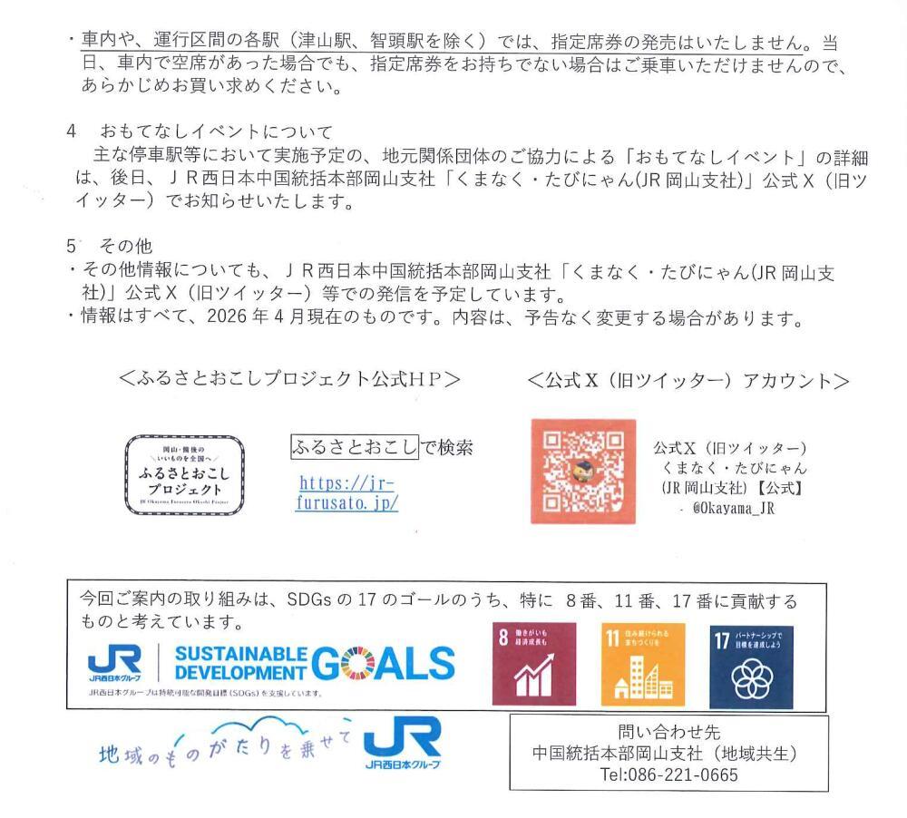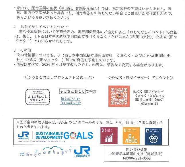 | お問い合わせ先 | 中国統括本部岡山支社(地域共生) TEL.086-221-0665 |