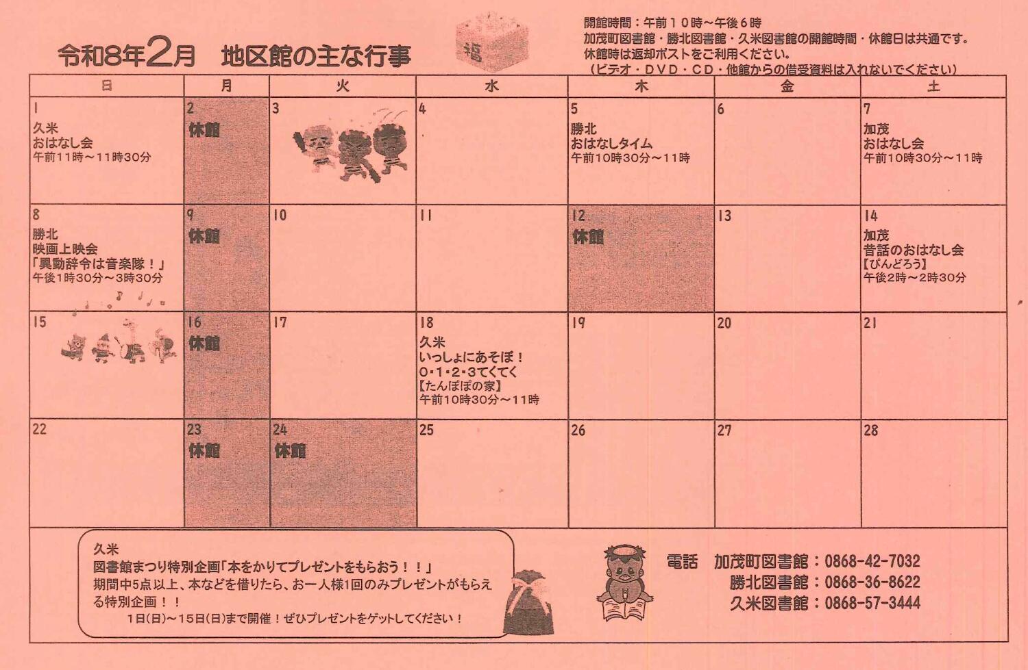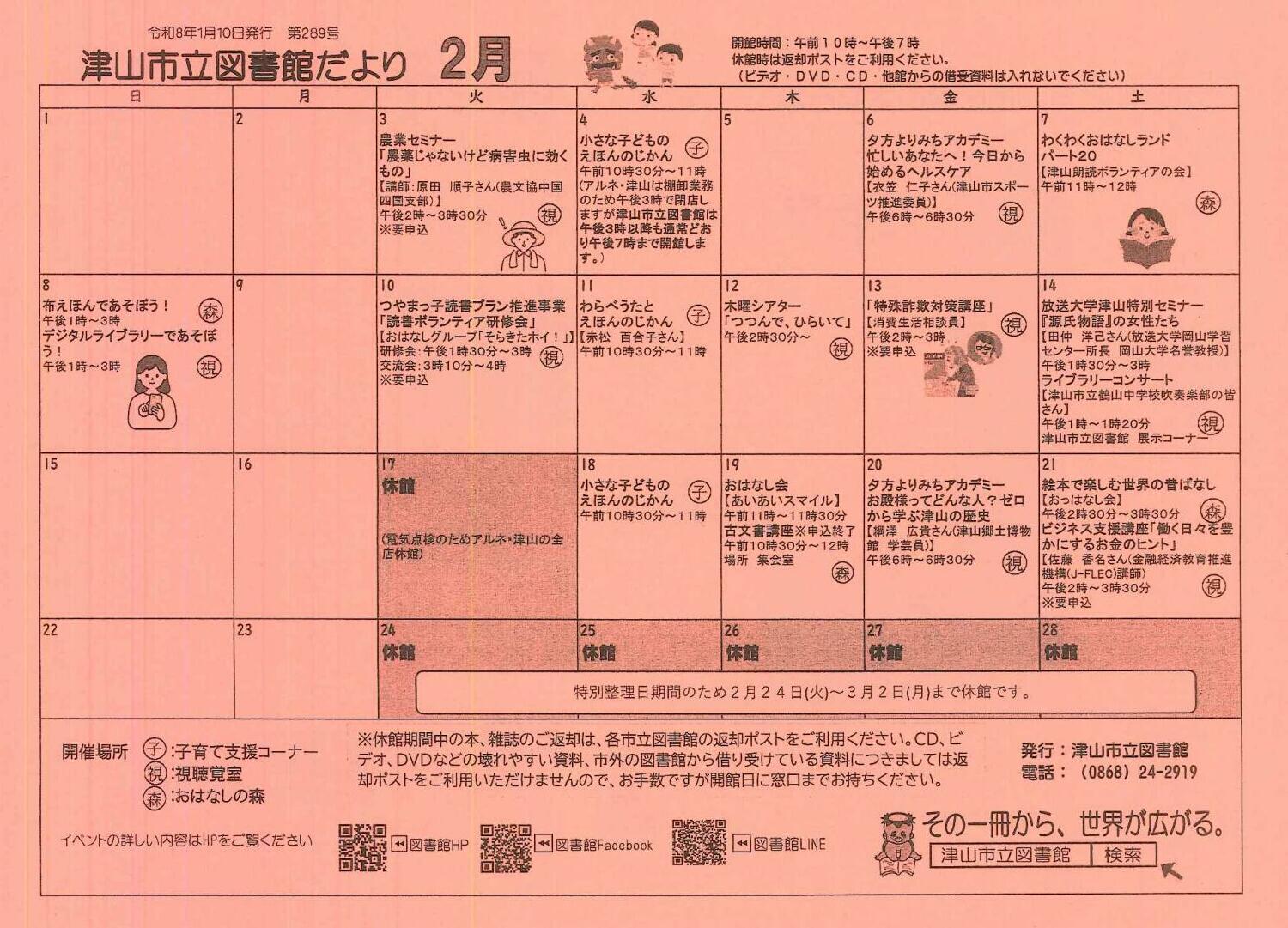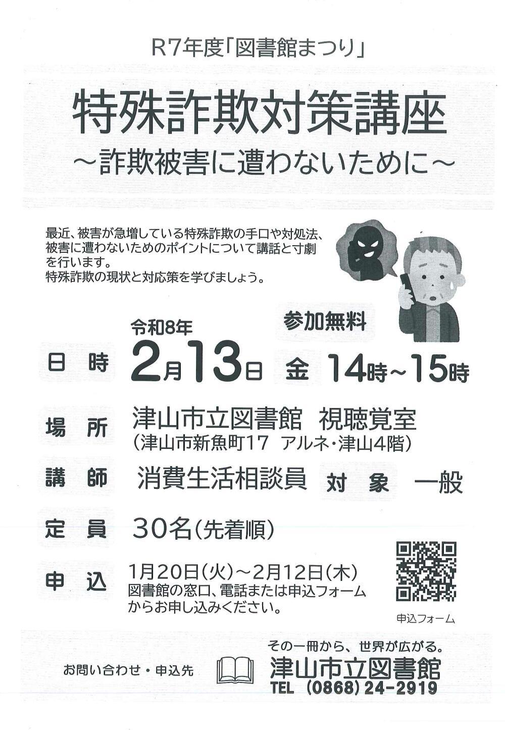 | お問い合わせ先 | 津山市立図書館 TEL.0868-24-2919 |