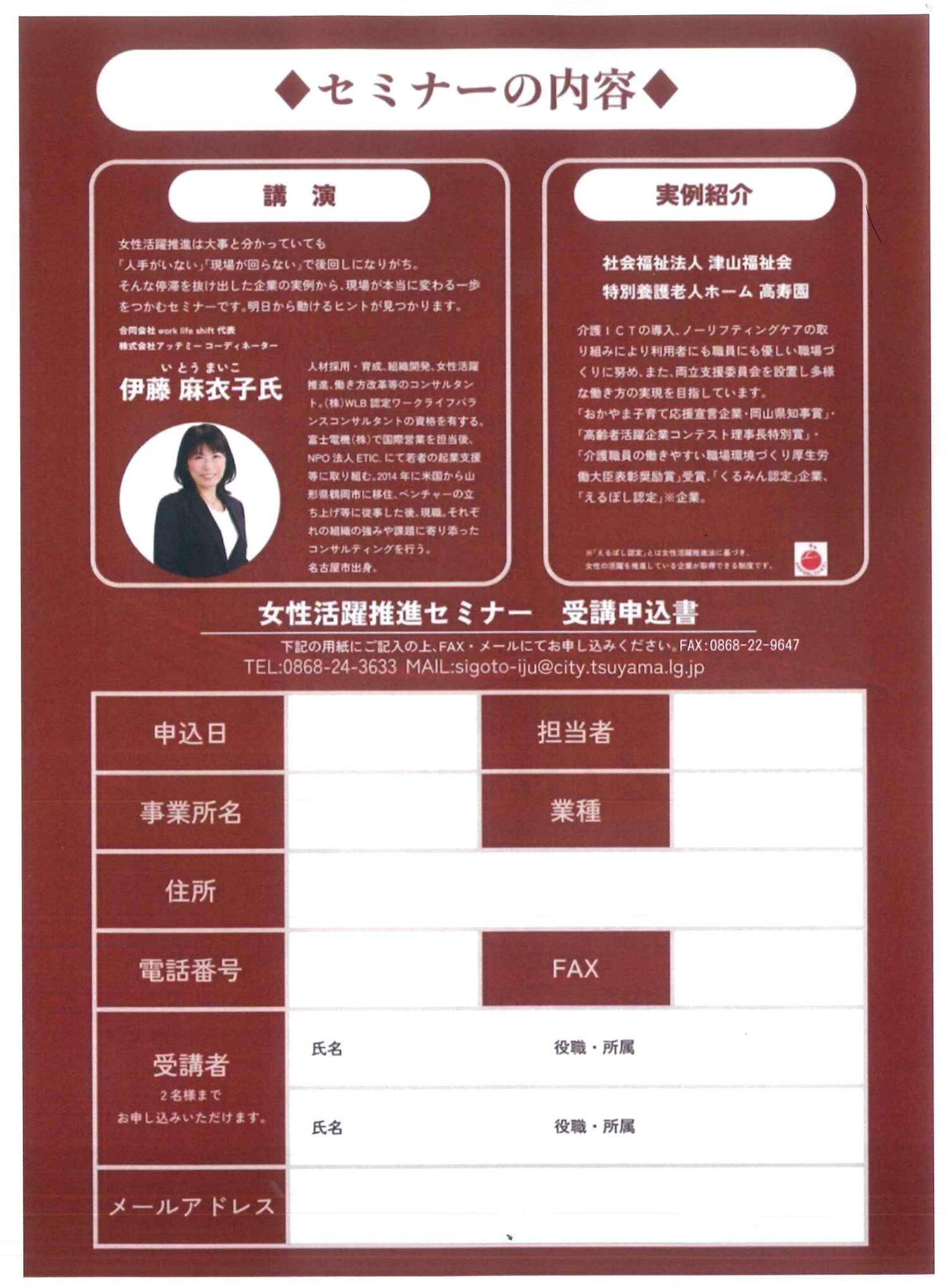 | お問い合わせ先 | つやま産業支援センター TEL.0868-24-0740 |