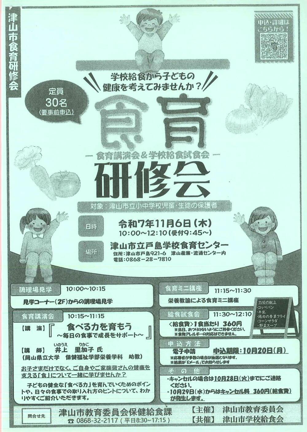お問い合わせ先 | 津山市立戸島学校食育センターTEL.0868-28-7810 |