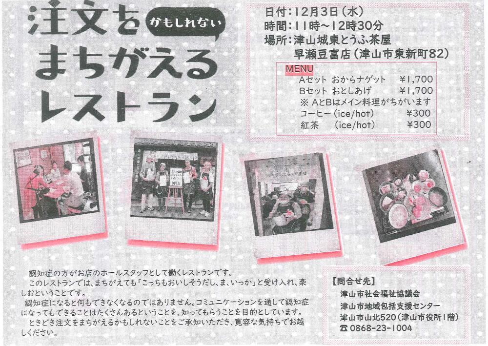 | お問い合わせ先 | 津山市地域包括支援センター TEL.0868‐23‐1004 |