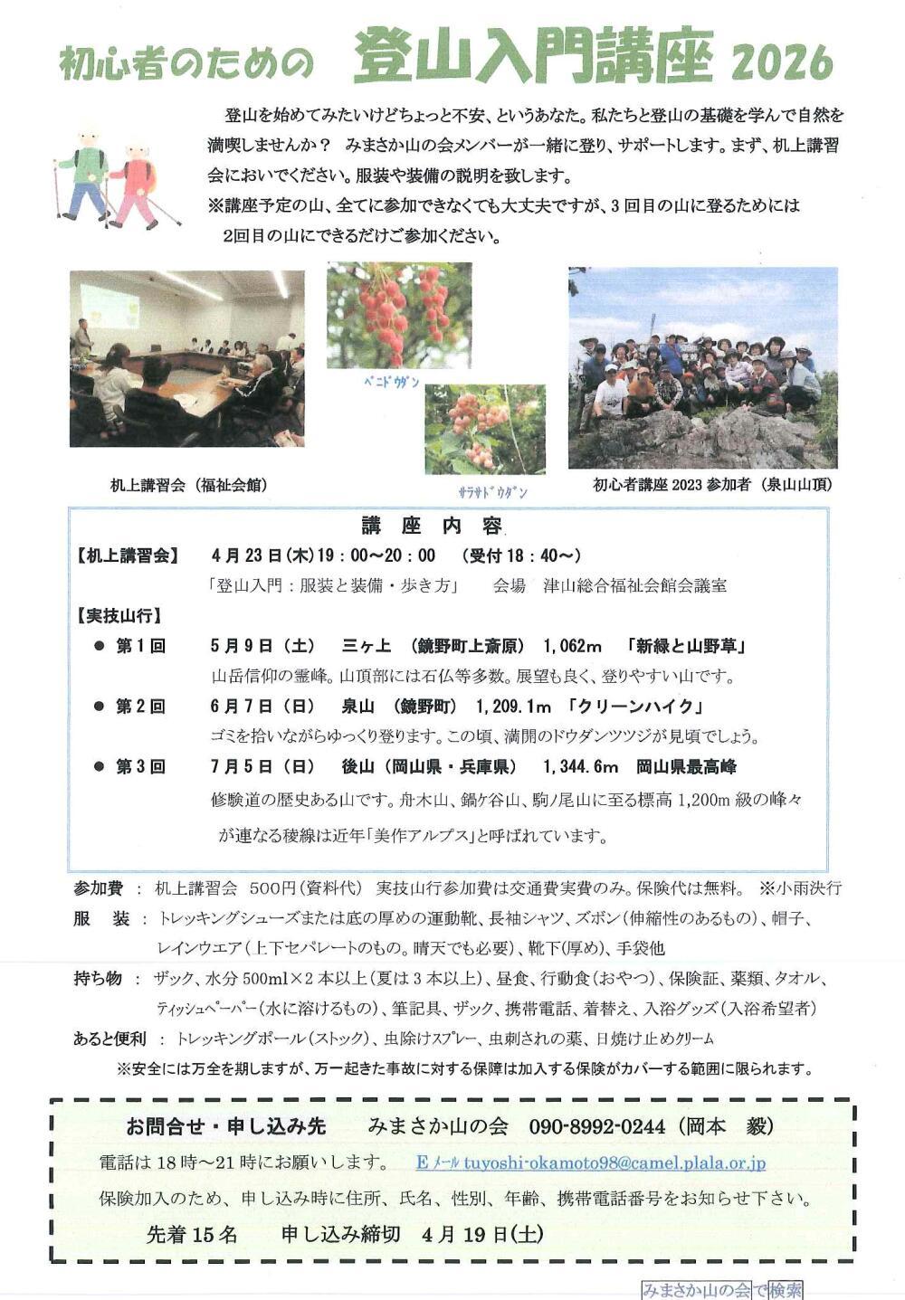| お問い合わせ先 | みまさか山の会 TEL.090-8992-0244 |
