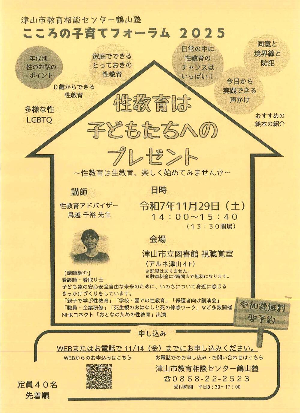 お問い合わせ先 | 津山市教育相談センター鶴山館 TEL.0868-22‐2523 |