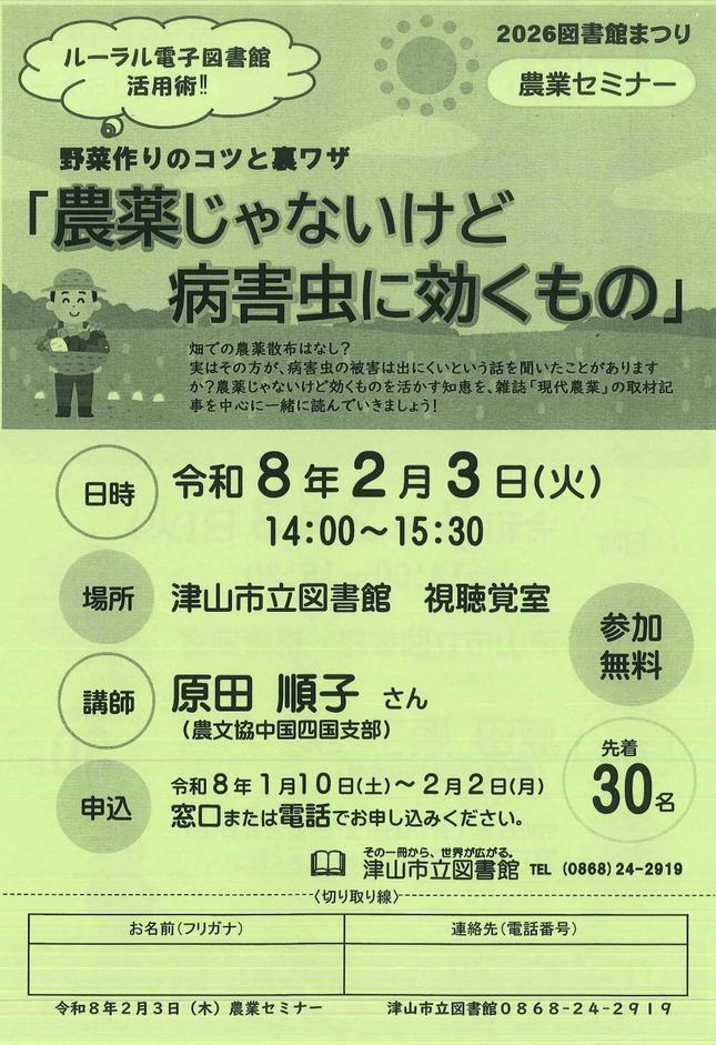| お問い合わせ先 | 津山市立図書館 TEL.0868-24-2919 |