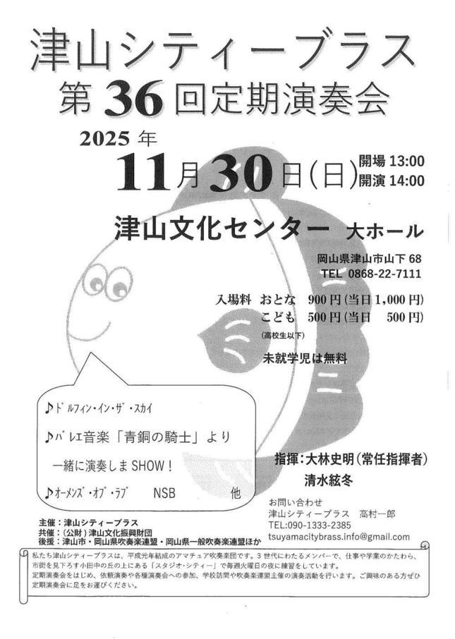 | お問い合わせ先 | 津山シティーブラス TEL.090-1333-2385(高村) |