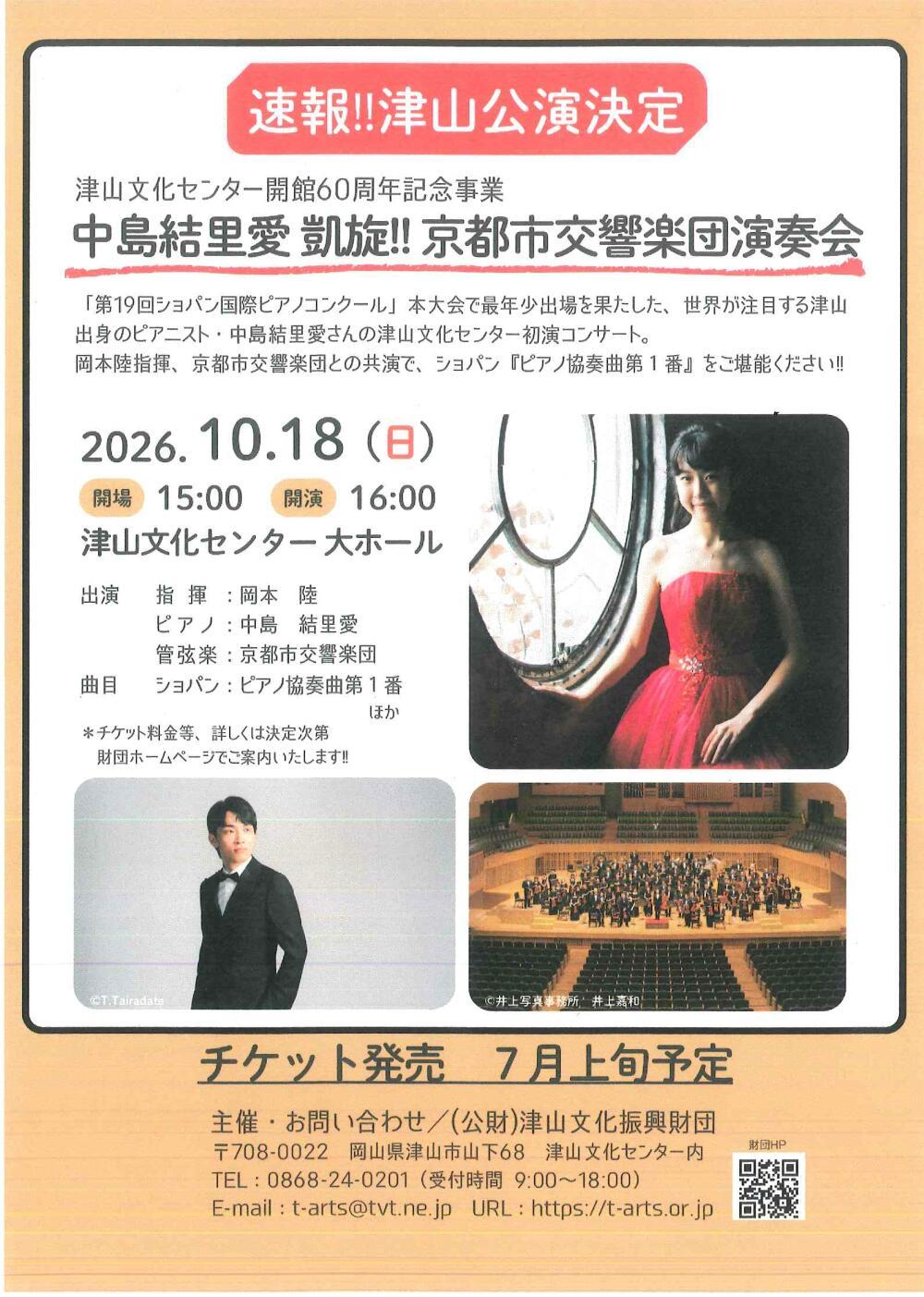 | お問い合わせ先 | (公財)津山文化振興財団 TEL.0868-24-0201 |