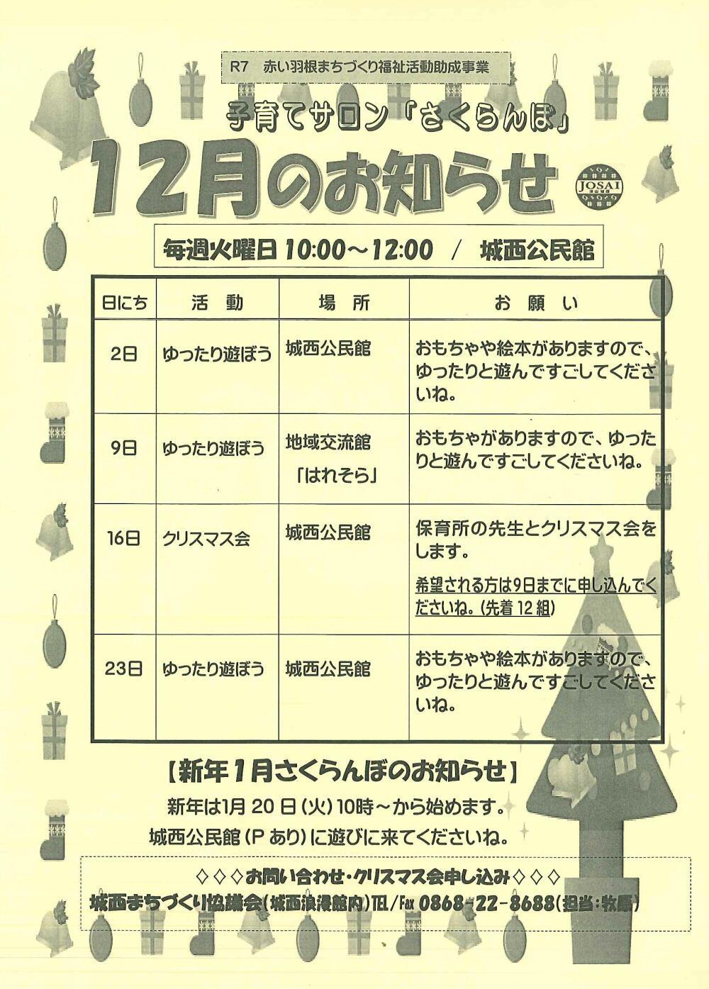 | お問い合わせ先 | 城西まちづくり協議会 TEL.0868-22-8688 |