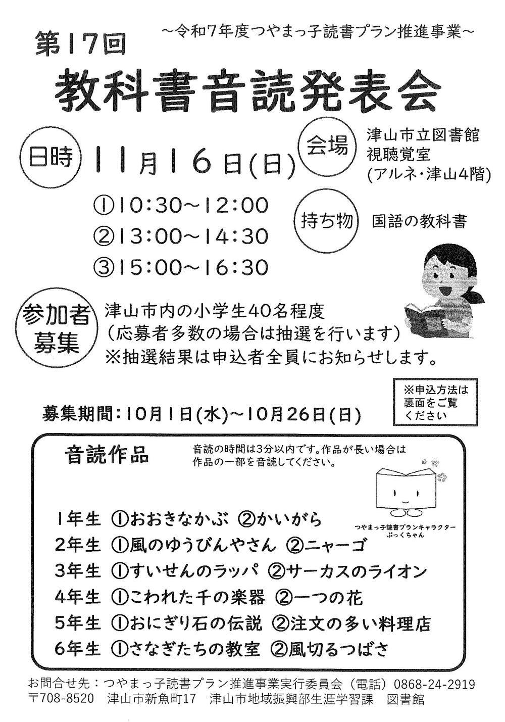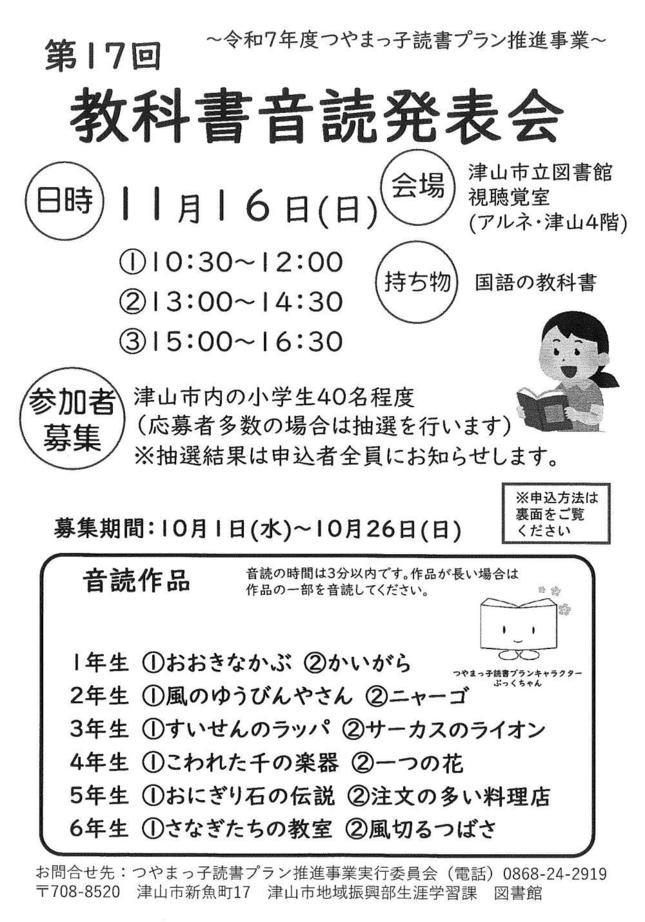 | お問い合わせ先 | つやまっ子読書プラン推進事業実行委員会 TEL.0868-24-2919 |