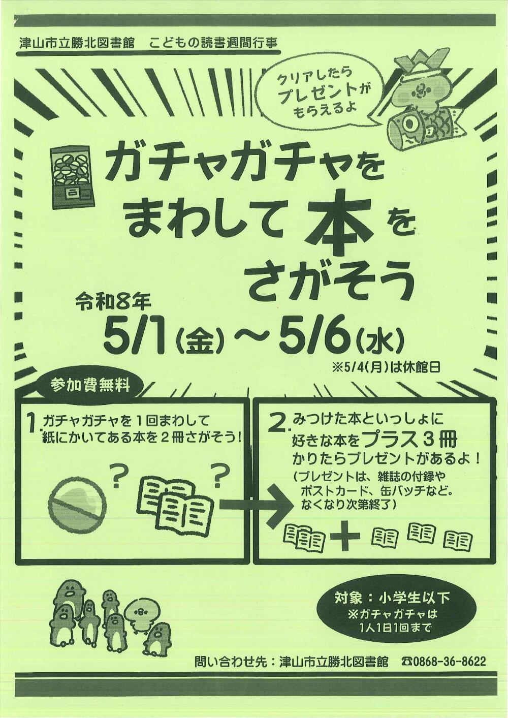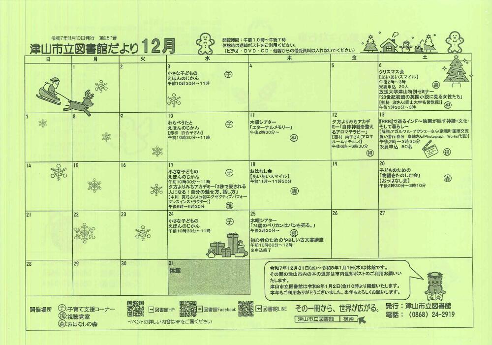 | お問い合わせ先 | 津山市立図書館 TEL.0868-24-2919 |