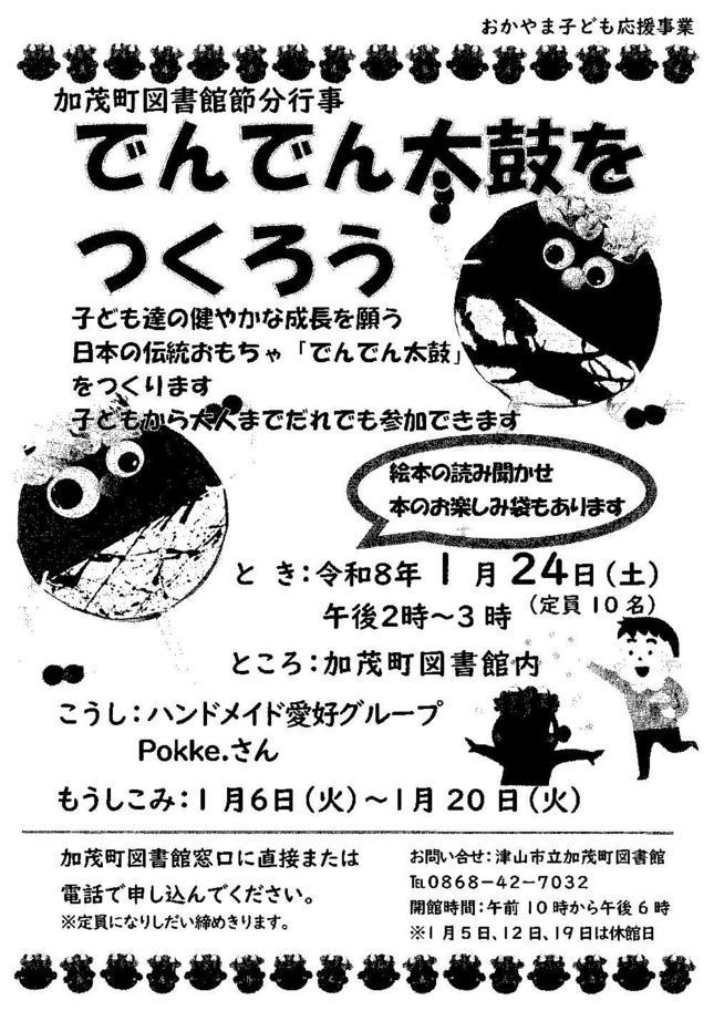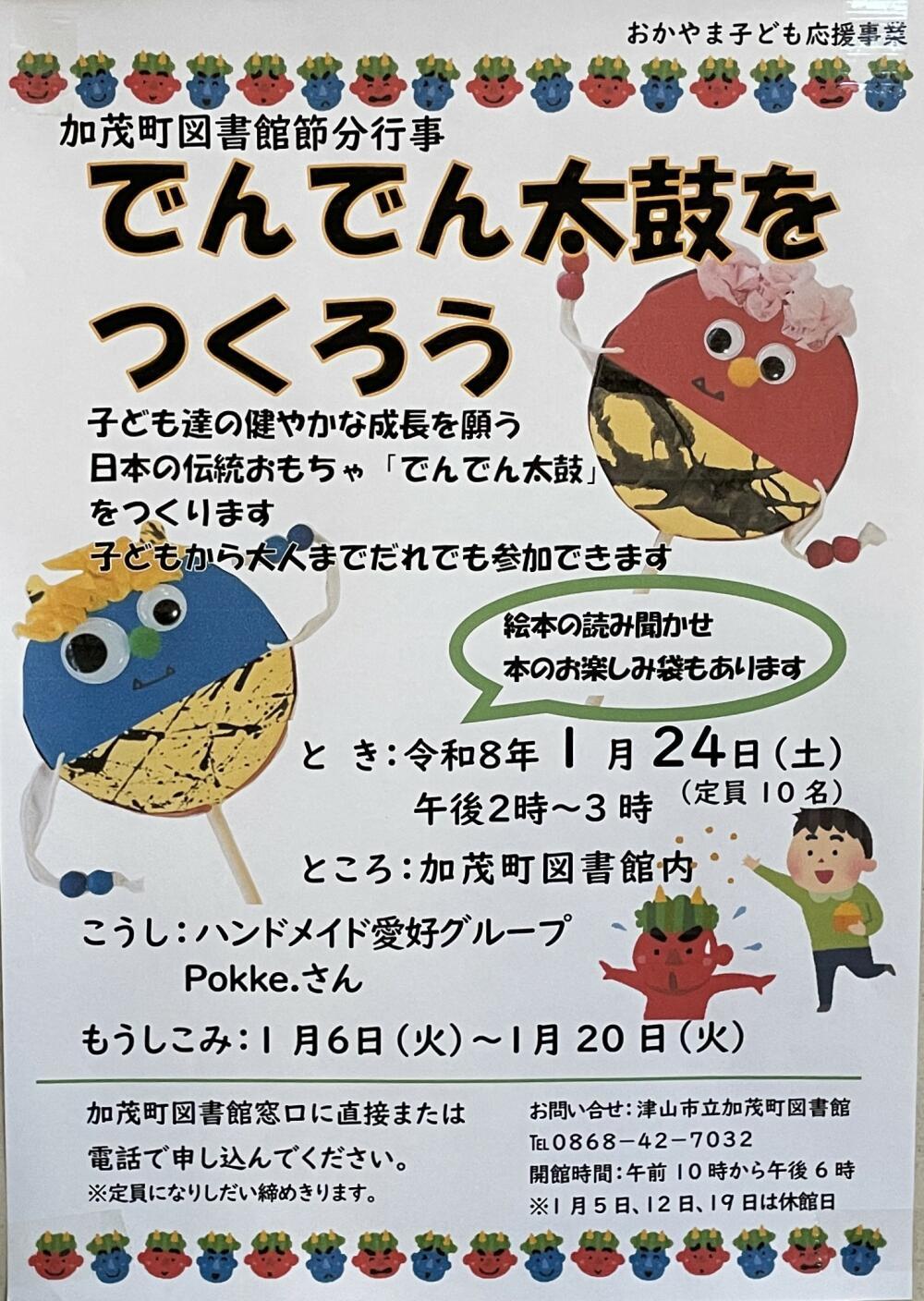 でんでん太鼓をつくろう(加茂町図書館節分行事)