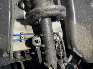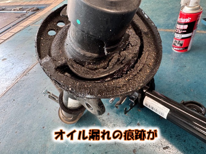 リアの足回りを確認するとオイル漏れの痕跡が見られました。