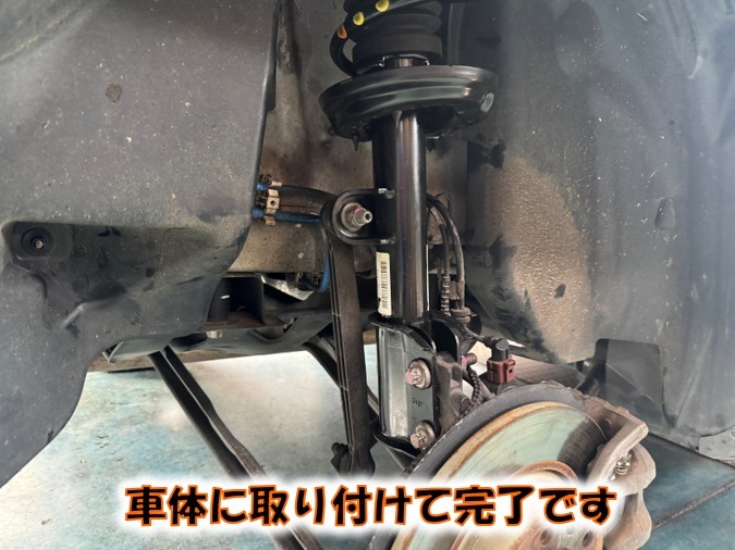 コイルスプリングをお持ちいただいたショックアブソーバーに組み直し、 再度車体に組付けて完了です😊