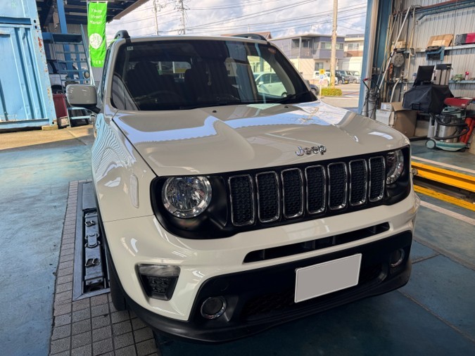 さて、今回のお客さまは右リアのショックアブソーバーの交換希望でご来店されたJEEP レネゲードです。