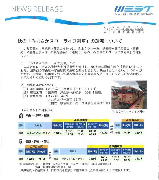 お問い合わせ先 | みまさかローカル鉄道観光実行委員会(津山まなびの鉄道館内)TEL.0868‐35‐3343 |