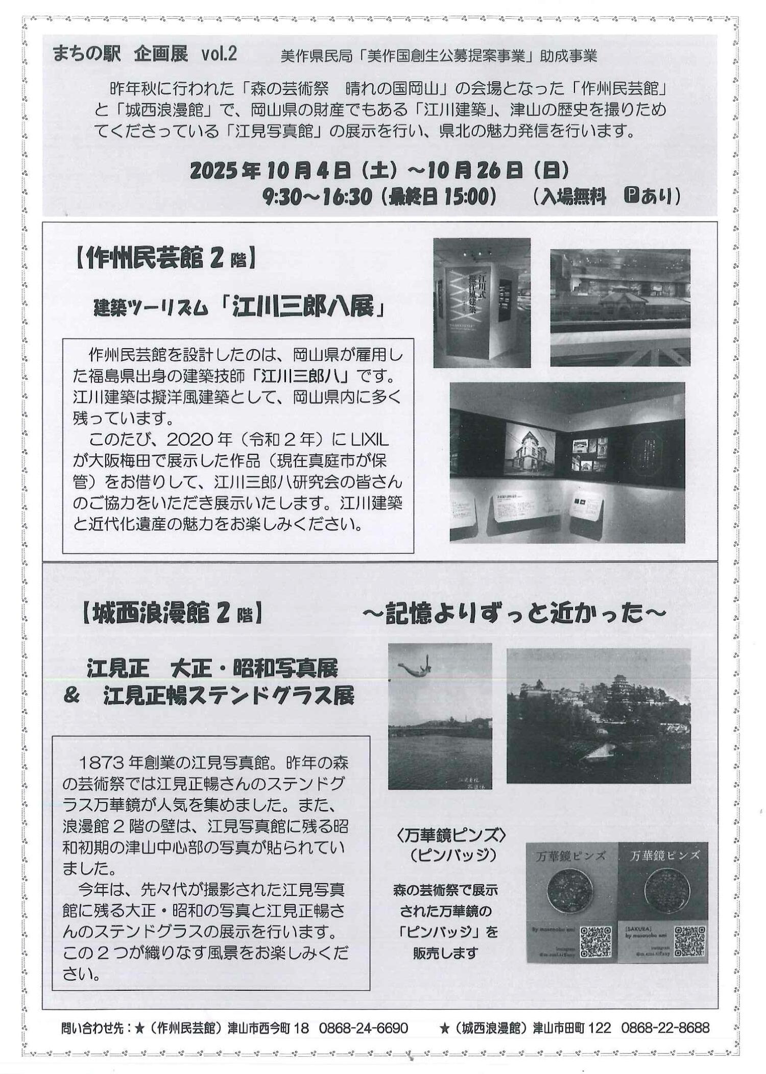 お問い合わせ先 作州民芸館 TEL.0868‐24‐6690