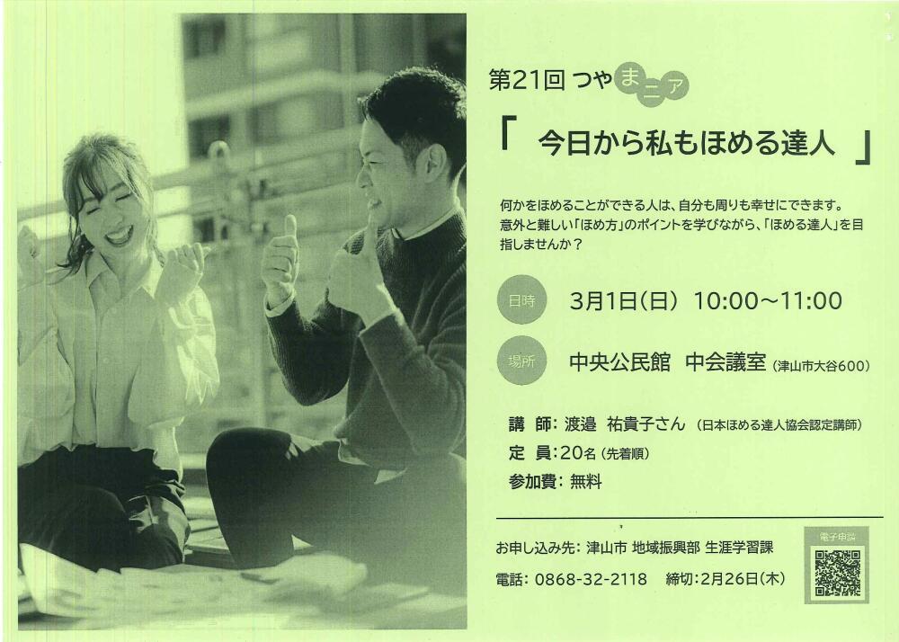| お問い合わせ先 | 津山市地域振興部 生涯学習課 TEL.0868-32-2118 |