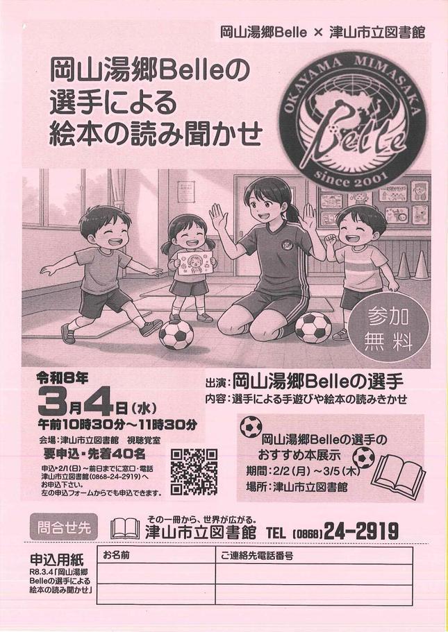 岡山湯郷Belleの選手による絵本の読み聞かせ