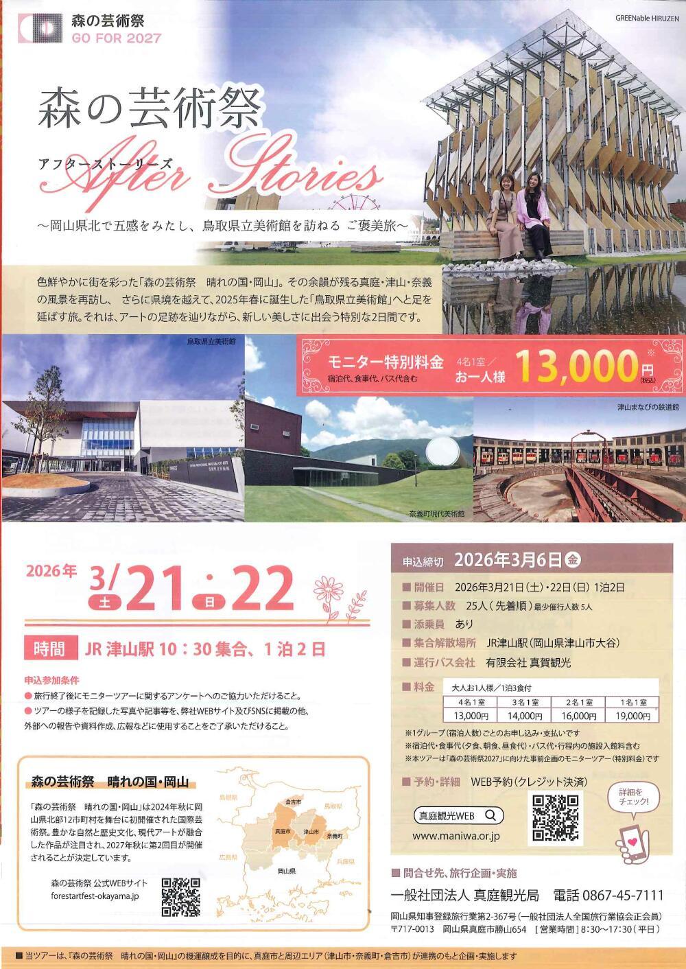 森の芸術祭~岡山県北で五感をみたし、鳥取県立美術館を訪ねる ご褒美旅~