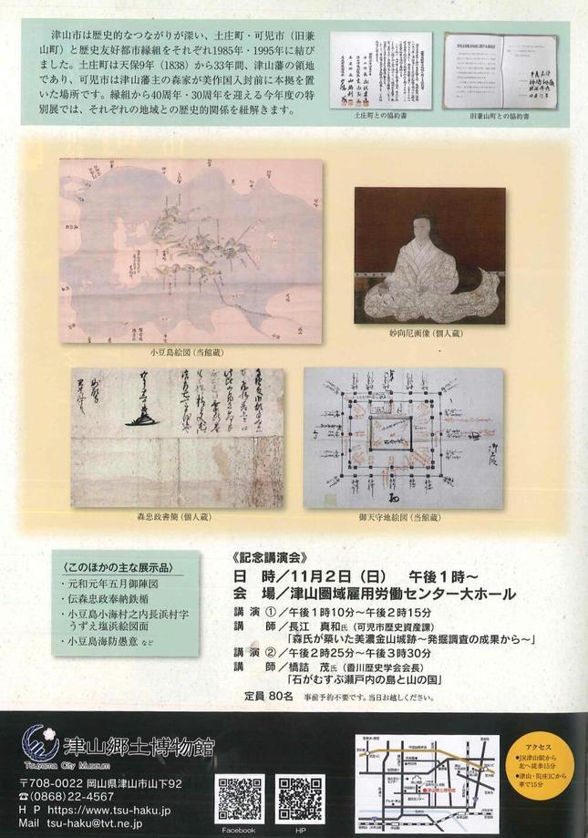 津山郷土博物館 令和7年度特別展「土庄町と可児市と津山」