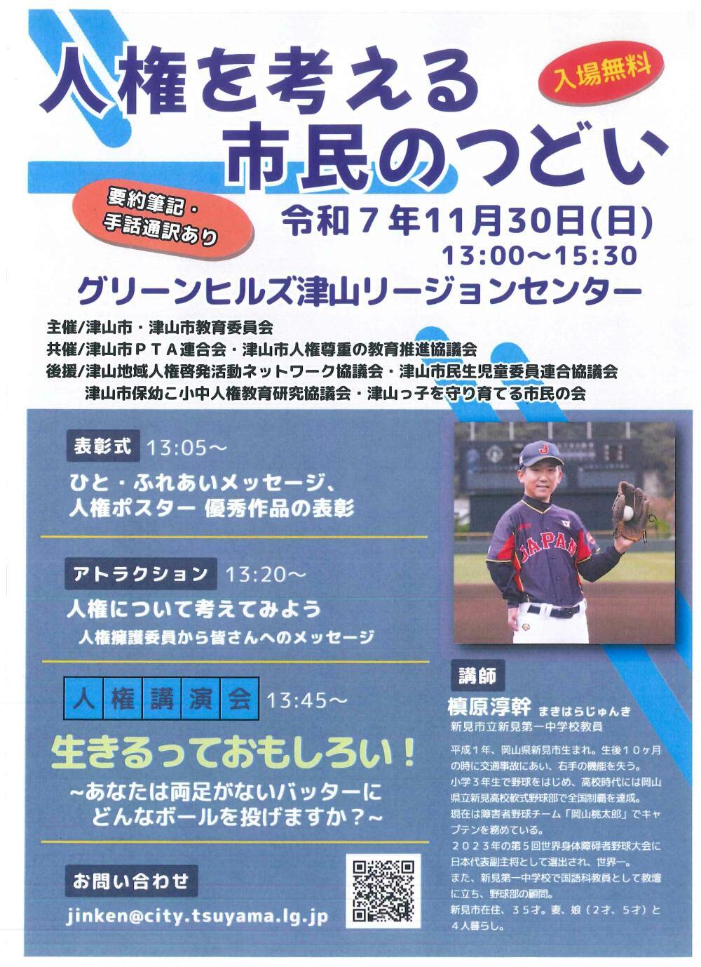 お問い合わせ先 | 津山市総務部人権啓発課「さん・さん」内 |