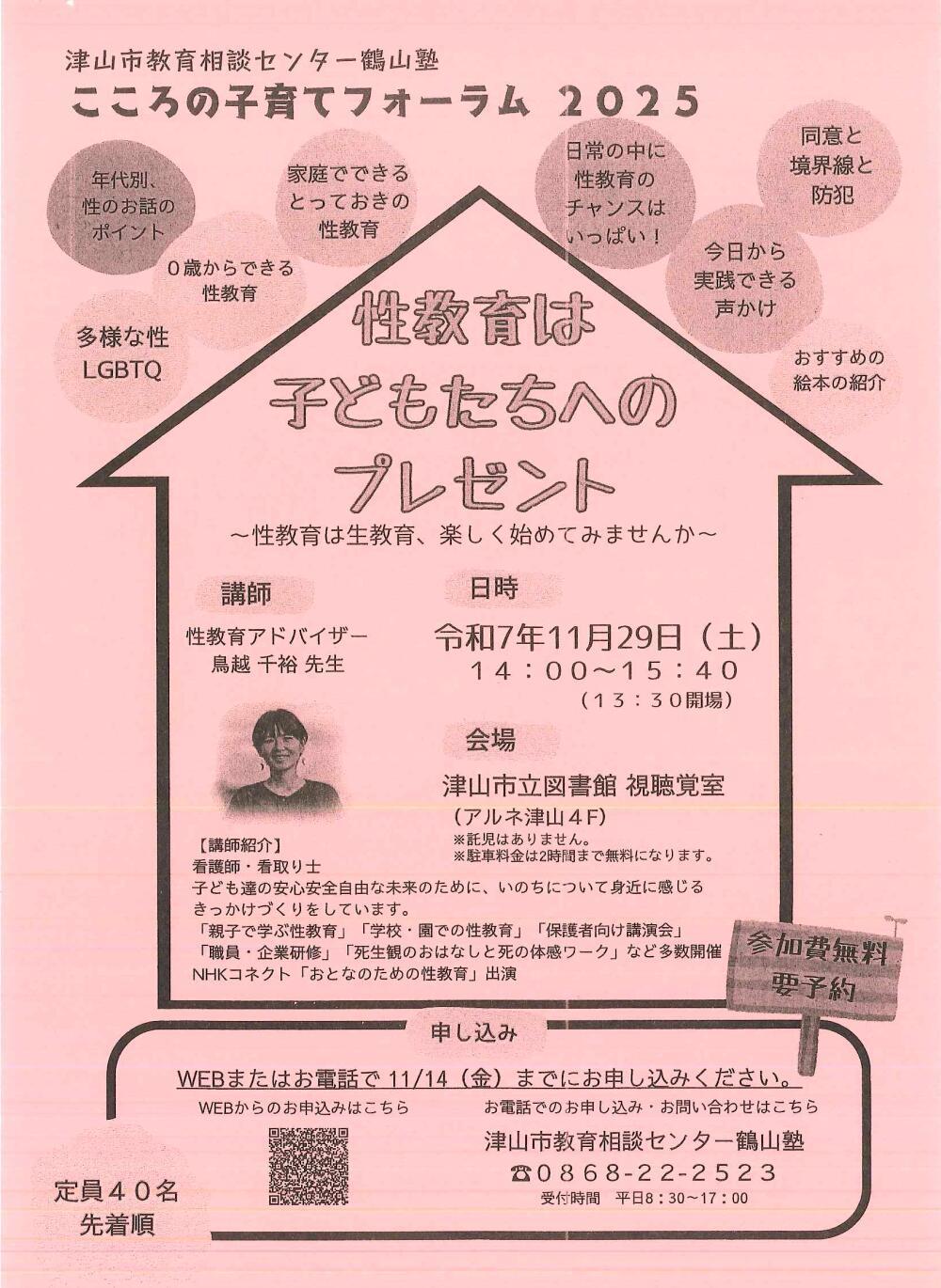 お問い合わせ先 | 津山市教育相談センター鶴山熟 TEL.868-22-2523 |