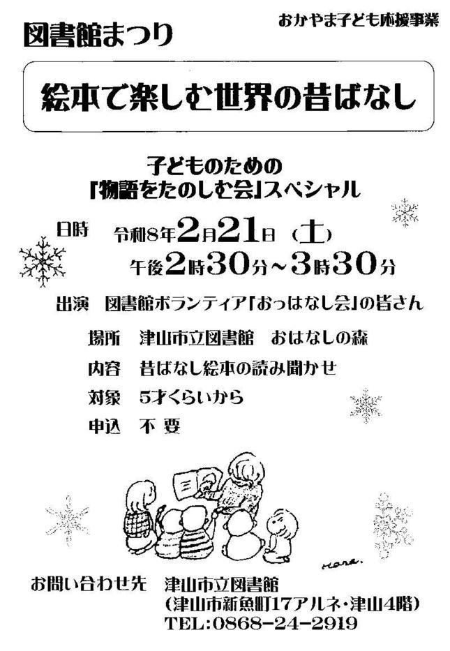 | お問い合わせ先 | 津山市立図書館 TEL.0868-24-2919 |